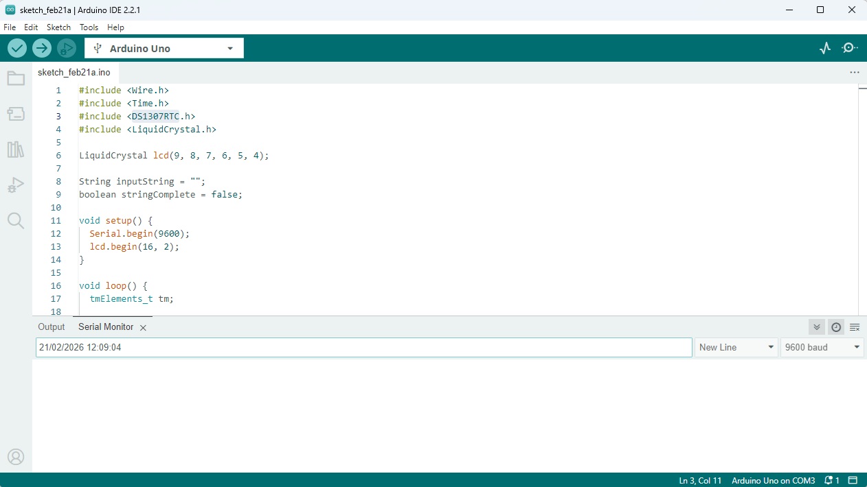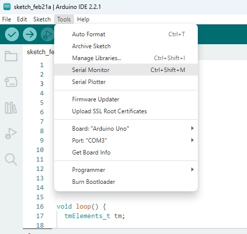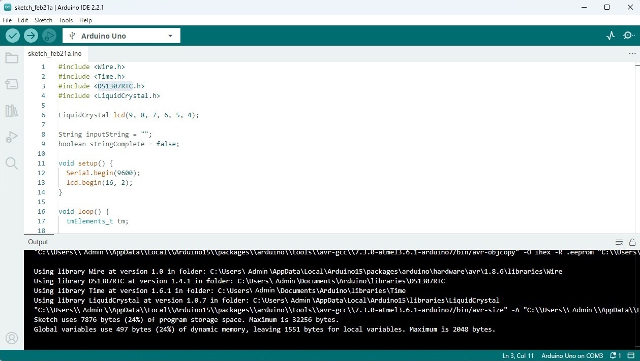 Arduino will send the data to the RTC module, and the time will be written into the DS1307 internal memory.
