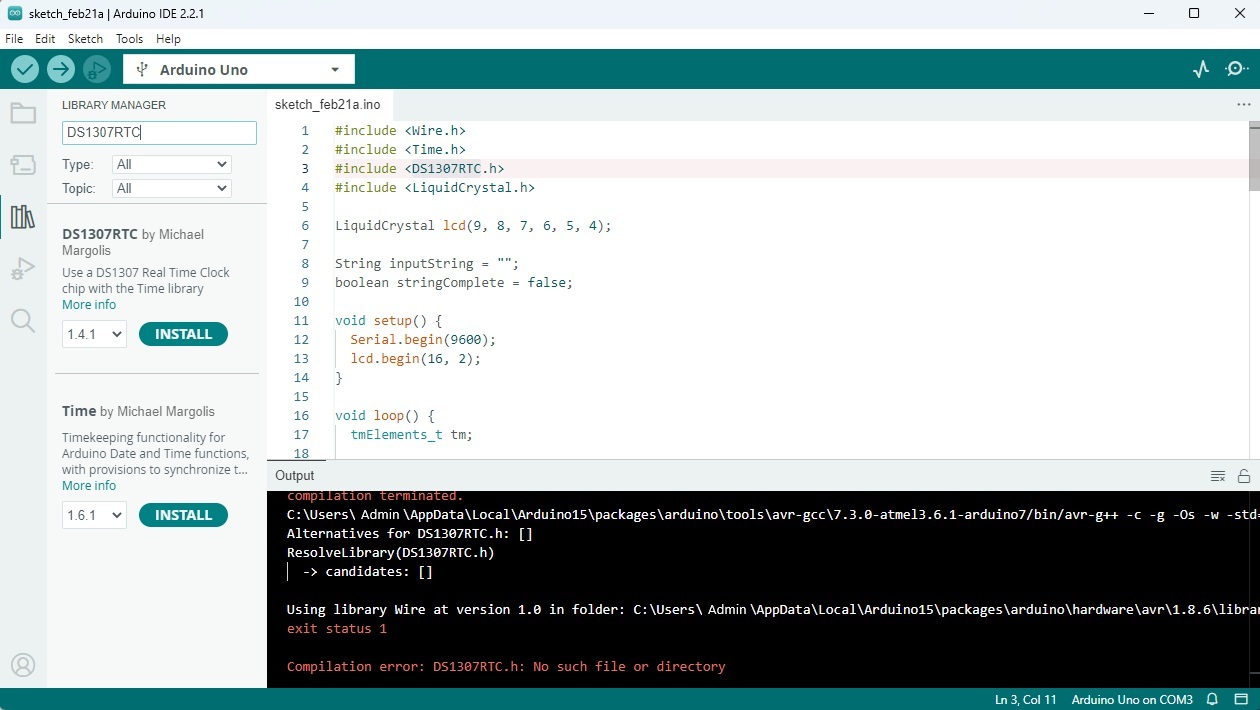 DS1307RTC.h: No such file or directory