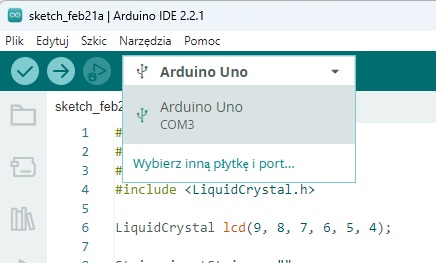 - Narzędzia → Płytka → Arduino Uno