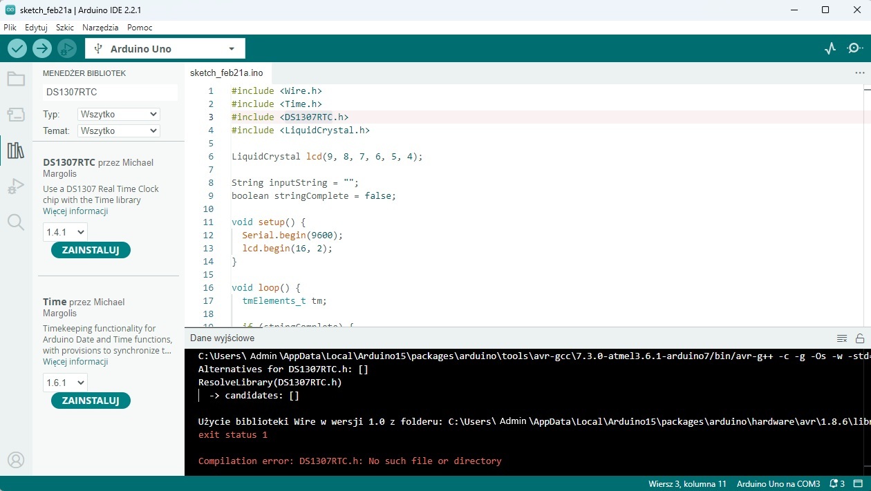 DS1307RTC.h: No such file or directory