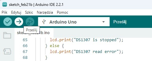 Moduł DS1307 wyposażony jest w baterię, dzięki której czas jest zachowany nawet po odłączeniu zasilania Arduino.