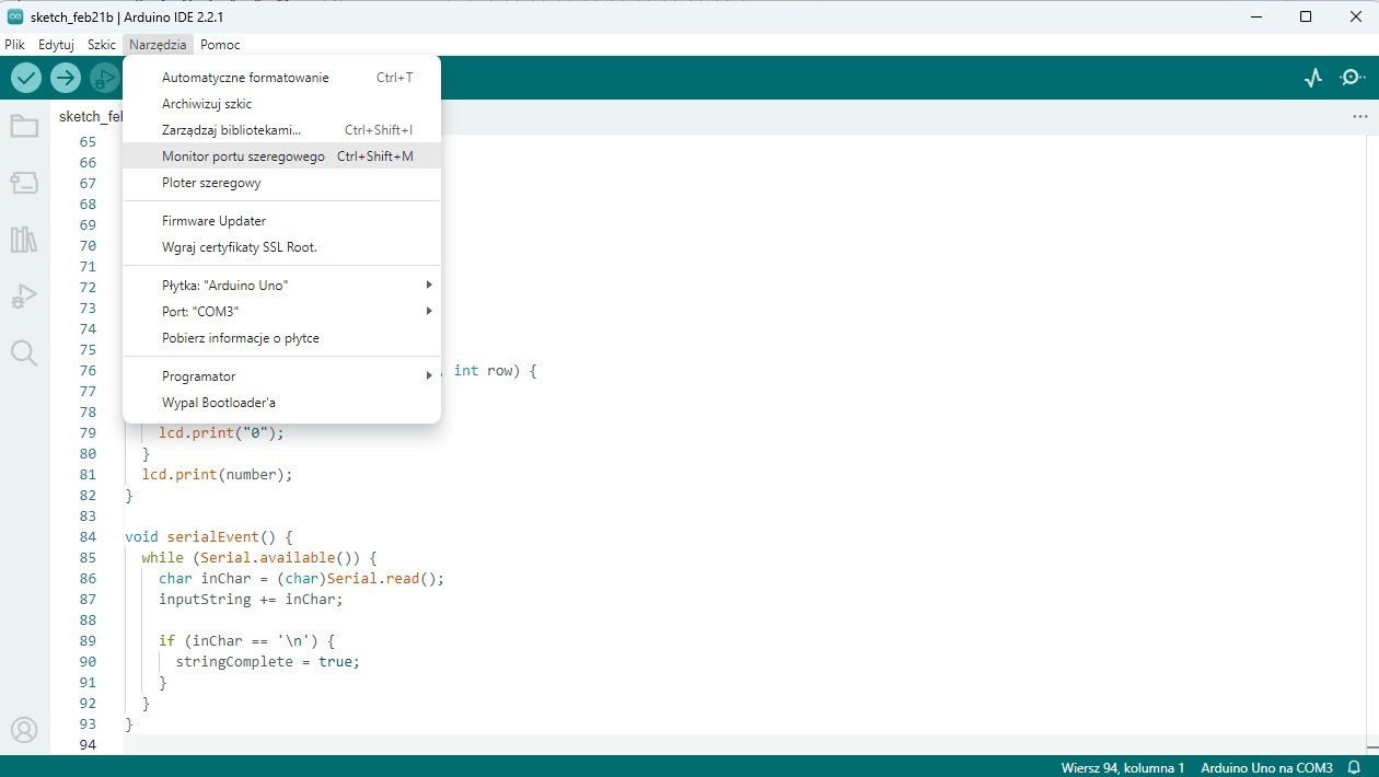 Narzędzia → Monitor portu szeregowego