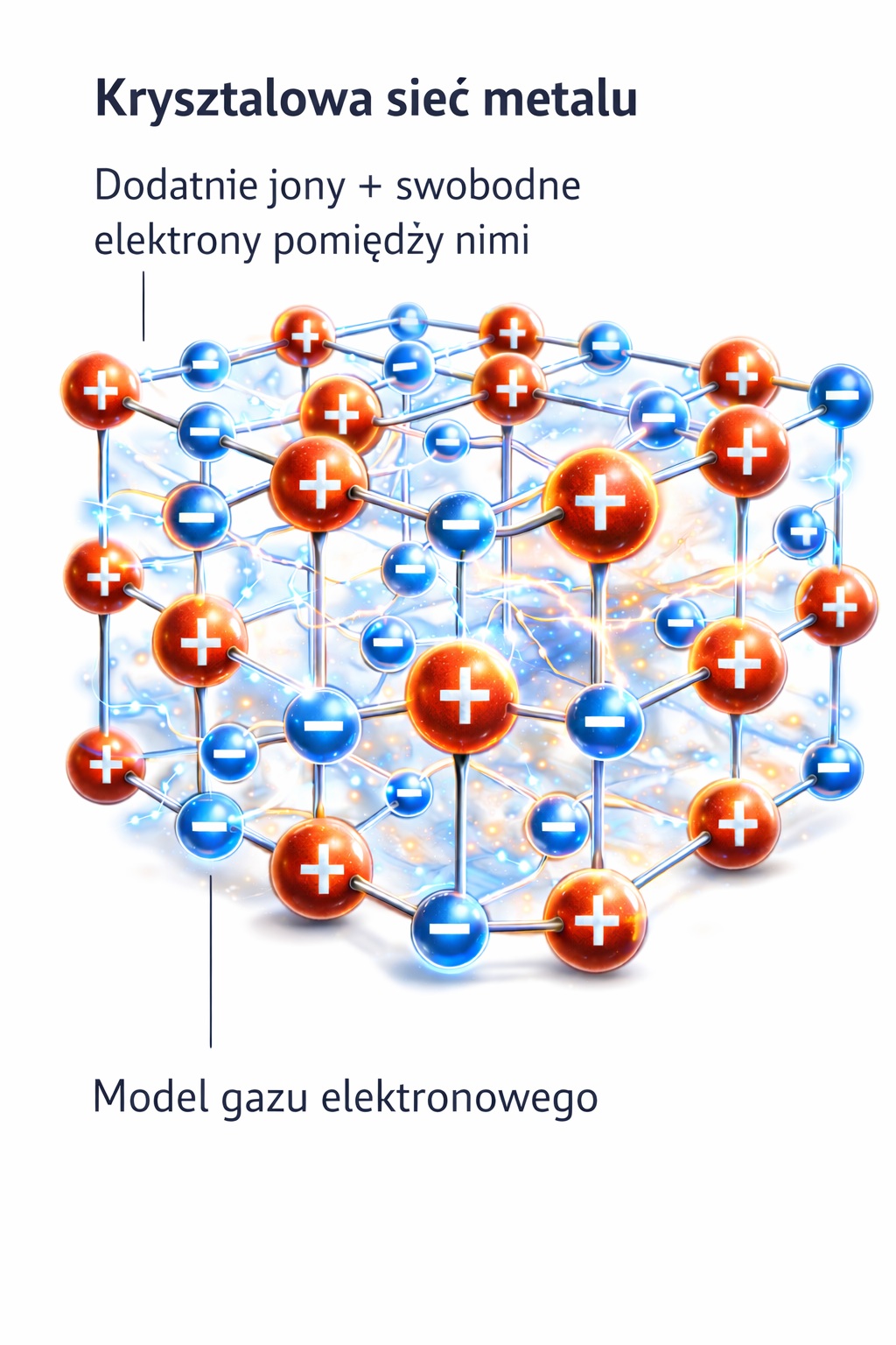 Atomy metalu tworzą uporządkowaną strukturę zwaną siecią krystaliczną.