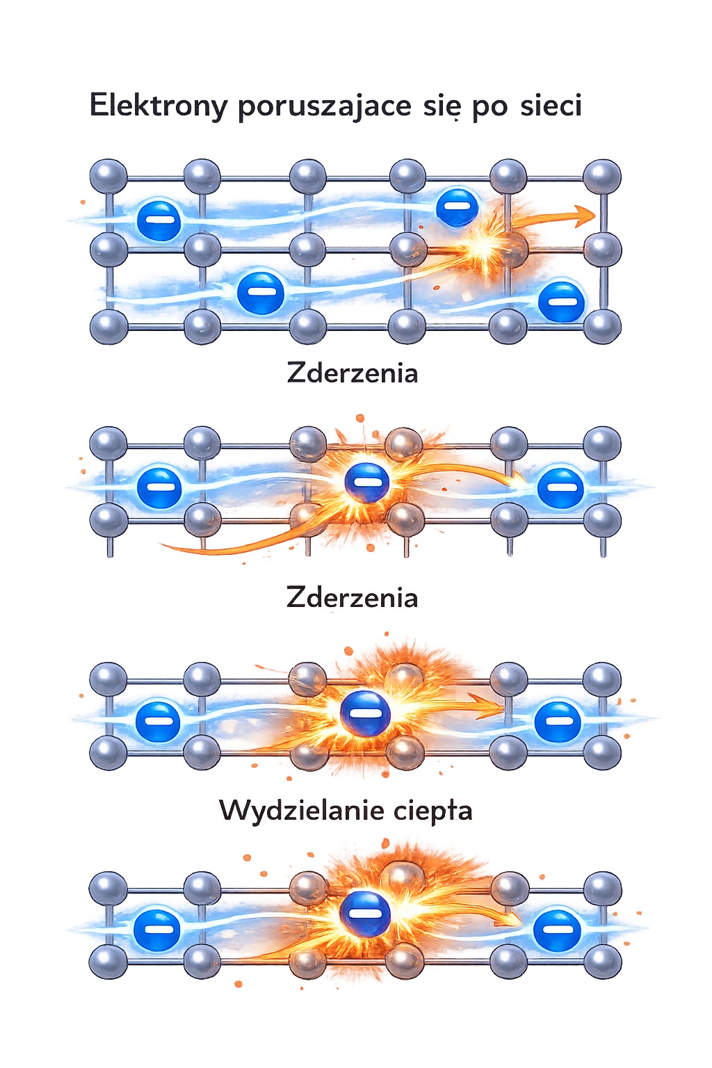 Gdy elektrony poruszają się przez przewodnik, zderzają się z atomami sieci krystalicznej.